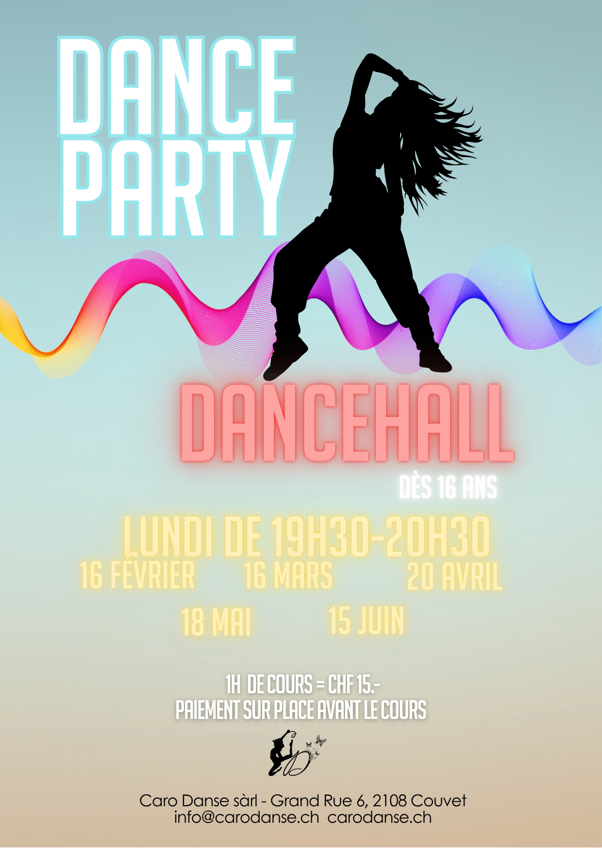Chaque élève a la possibilité de participer à un cours d’essai gratuit par style de danse et par semestre.